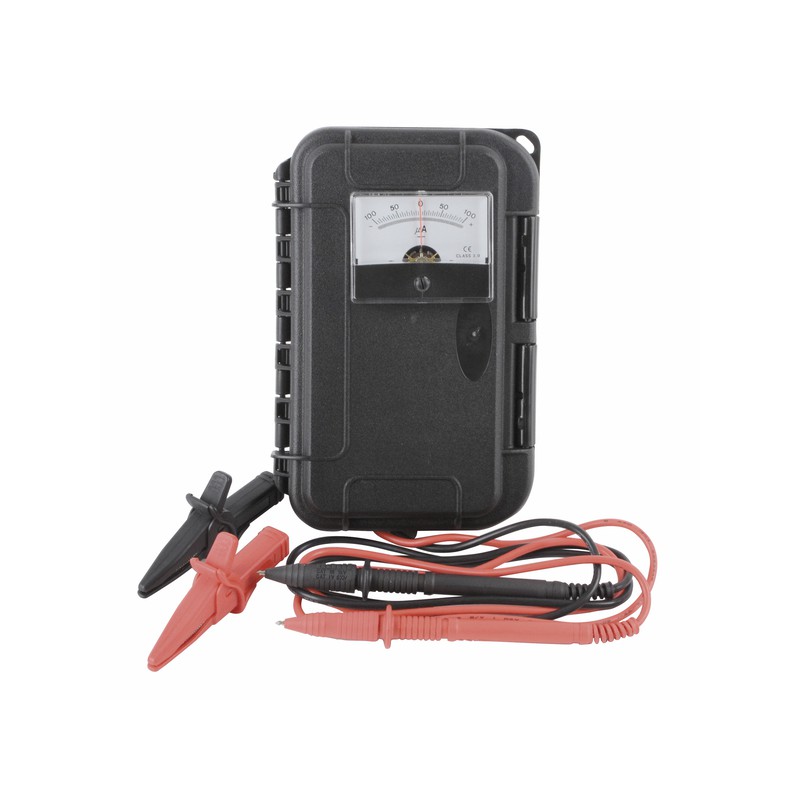 Sein einstellbarer zentraler Nullpunkt ermöglicht die Messung auch wenn die Kabel verkehrt angeschlossen wurden. Er enthält zwei Kabel (ein roter, ein schwarzer), ausgestattet mit Steckdosen Typ Krokodilklemmen. Die Kabel werden im Kasten aufbewahrt.